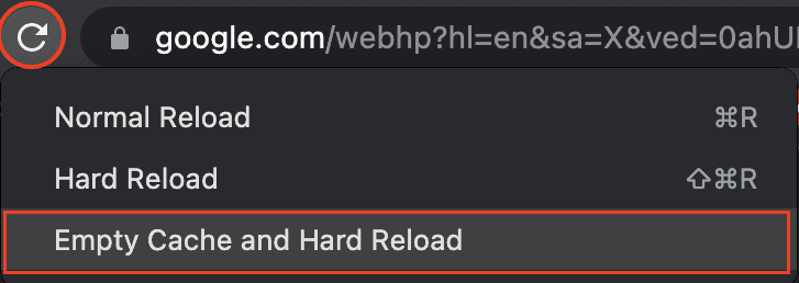 Esto revelará la opción de vaciar caché y recarga completa: