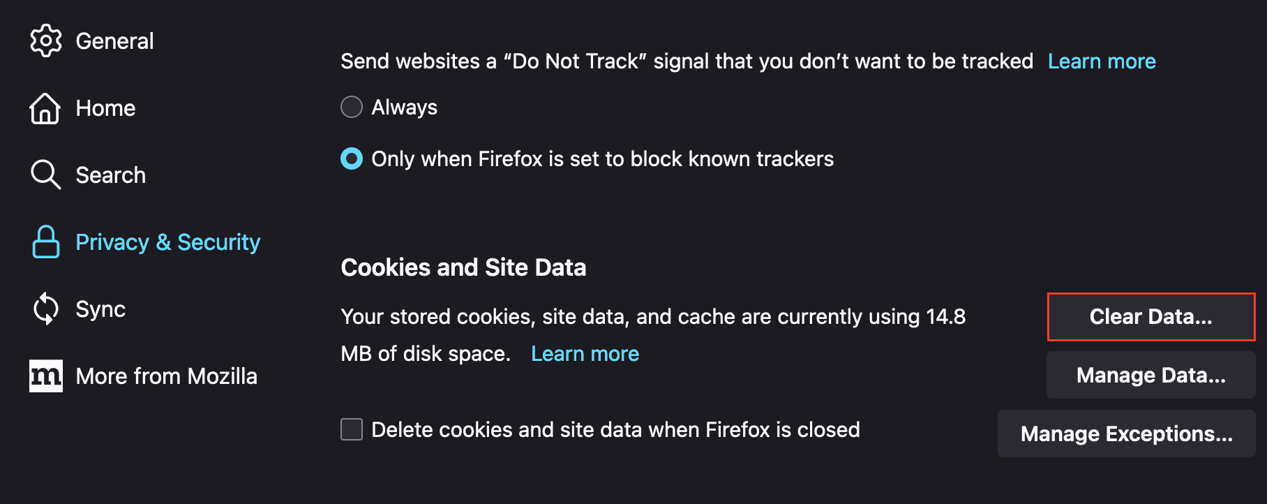 luego ve a Privacidad y seguridad y desplázate hacia abajo hasta la opción Borrar datos y haz clic en ella: